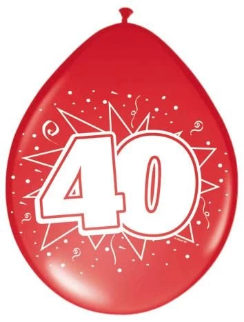 Deze ballonnen met het cijfer 40 erop zijn per 8 stuks verpakt. Deze ballonnen zijn alleen geschikt voor luchtvulling en in dit zakje zitten verschillende kleuren ballonnen.