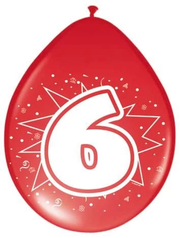Deze ballonnen met het cijfer 6 erop zijn per 8 stuks verpakt. Deze ballonnen zijn alleen geschikt voor luchtvulling en in dit zakje zitten verschillende kleuren ballonnen.