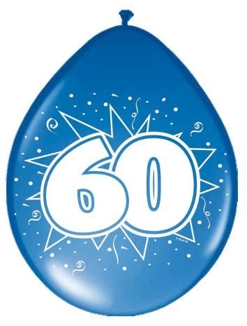 Deze ballonnen met het cijfer 60 erop zijn per 8 stuks verpakt. Deze ballonnen zijn alleen geschikt voor luchtvulling en in dit zakje zitten verschillende kleuren ballonnen.