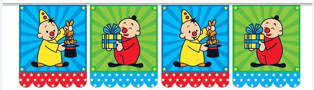 Ben je bijna jarig? Dan mogen deze feestelijke vlaggetjes van Bumba zeker niet ontbreken op jouw verjaardag. De vlaggenlijn is 6 meter lang en is aan twee zijden bedrukt.