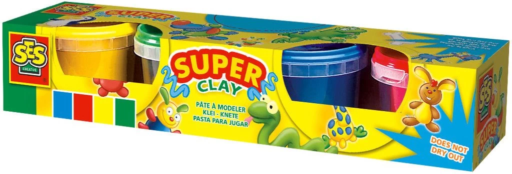 Maak de mooiste kleicreaties met deze vrolijke klei van SES. De klei is helder, zacht en lang bruikbaar door de hersluitbare verpakking. Zo heb je urenlang kleiplezier. De klei is veilig te gebruiken. Het is extreem zout, zodat kinderen de klei niet opeten.