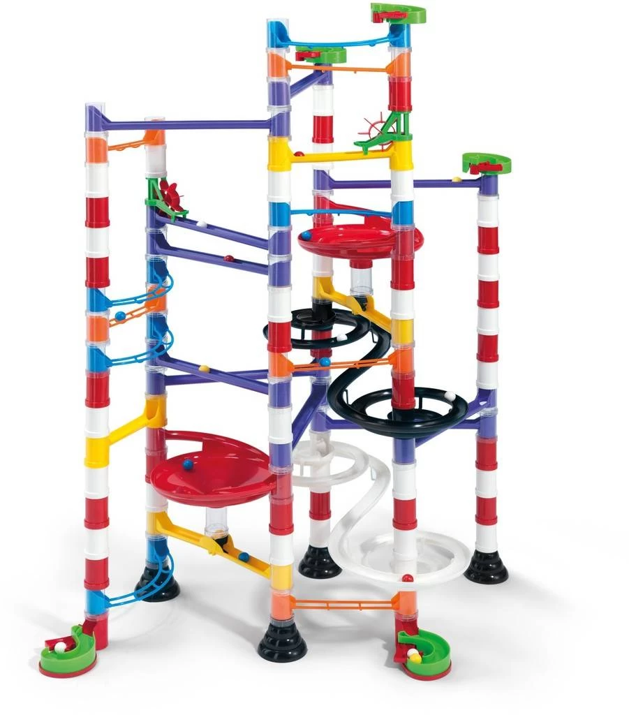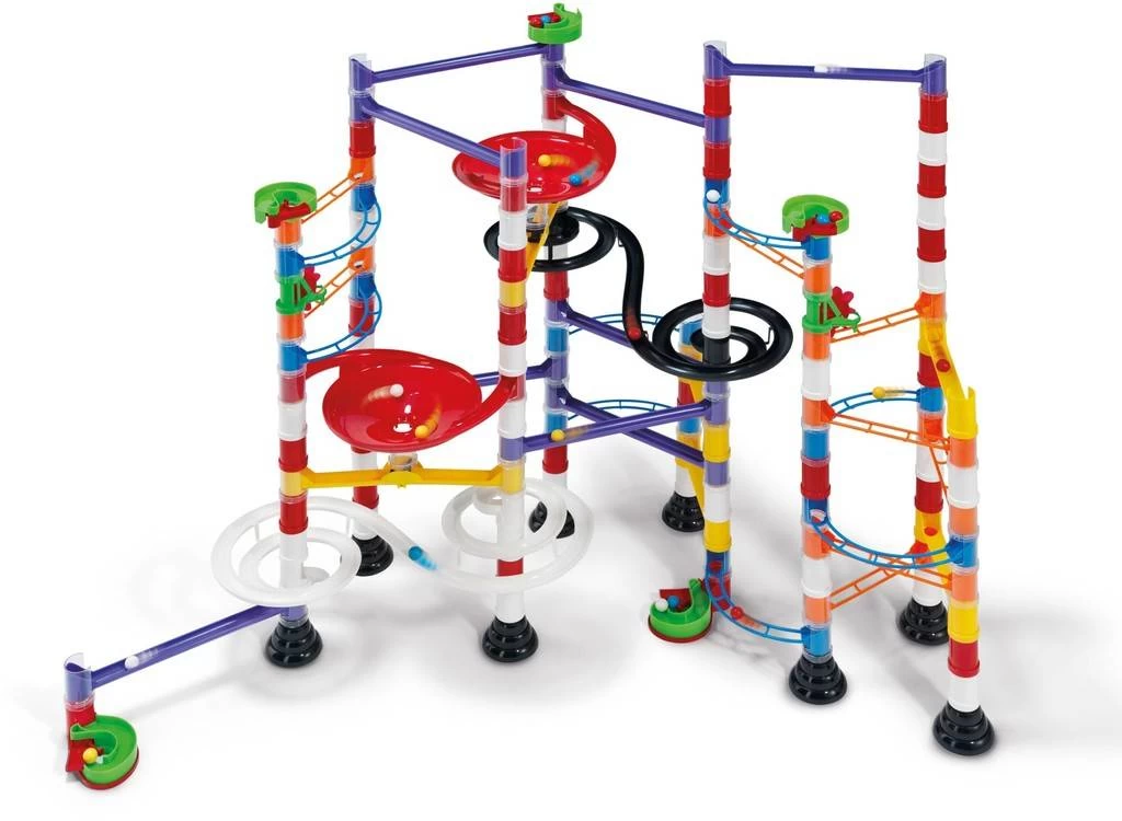 Deze Quercetti Migoga ‘Maxi’ knikkerbaan is een mooie uitgebreide set, bestaande uit maar liefst 213 onderdelen. Deze knikkerbaan bevat veel verschillende en verrassende elementen. Kinderen kunnen hun eigen combinaties maken of de voorbeelden volgen die op de doos staan afgebeeld. Alle onderdelen passen gemakkelijk in eindeloze combinaties, deze knikkerbaan staat dus garant voor uren speelplezier. Inclusief knikkers een een instructieboekje. Geschikt voor kinderen vanaf 8 jaar.