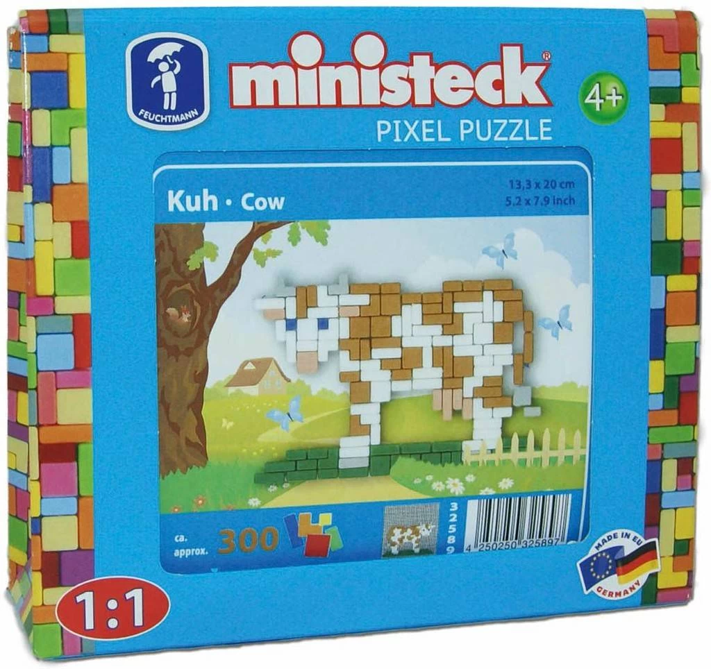 Met deze pixel puzzel van Ministeck leg jij met de circa 300 gekleurde steentjes een leuke koe. De set bestaat uit een insteekbordje van 13,3 x 13,3 cm, gekleurde Ministeck steentjes, een demontagetool en instructies. Het spelen met Ministeck stimuleert de ontwikkeling van de fijne motoriek, concentratie en creativiteit.