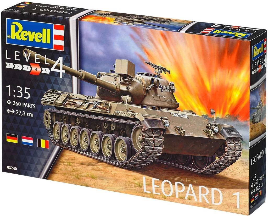 De bouwset van Leopard 1 revell is ontzettend leuk om zelf te bouwen. De modelbouwset bestaat uit 260 onderdelen en bevat een echte uitdaging! De modelbouw is gemaakt op een schaal van 1:35 in verhouding met het originele voertuig. Moeilijkheidsgraad:4/5.
