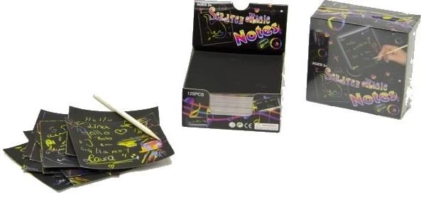 Jij krast prachtige memo’s tevoorschijn met deze Scratch It set! Gebruik de pen om de zwarte laag weg te krassen en onthul de felle kleuren die eronder verborgen liggen. Maak vormen en maak mooie tekeningen in alle kleuren van de regenboog.
