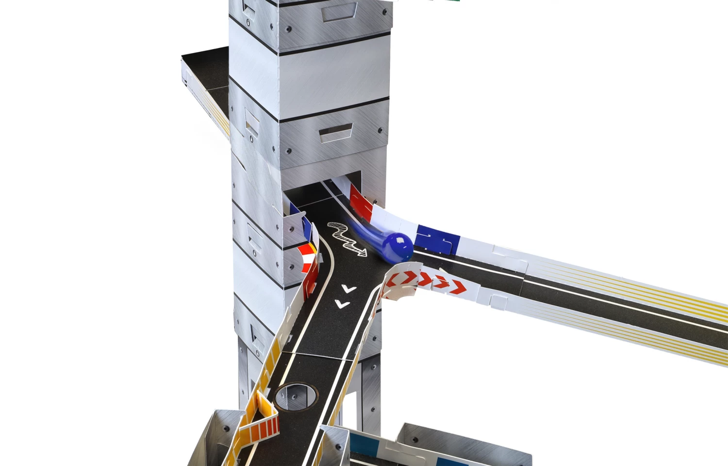 Bouw onze kartonnen racetrax volgens de handleiding of maak je eigen ontwerp met het modulaire bouwsysteem. De flexibiliteit van karton maakt Marble Racetrax tot een eindeloze bron van bouwplezier.