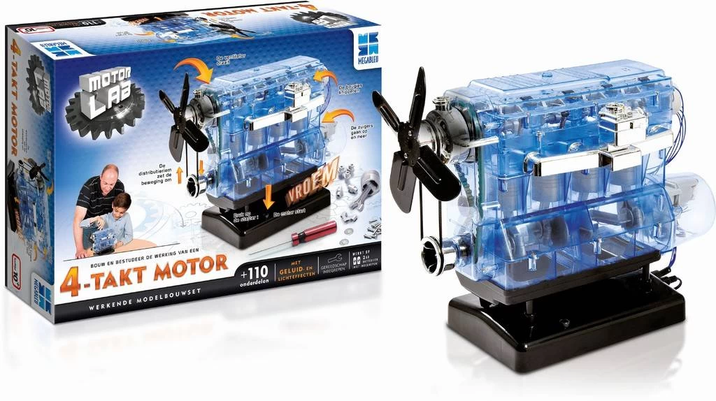Bouw en leer de werkingsprincipes van een motor dankzij deze modelbouwsets. Het zijn vereenvoudigde modellen van echte motoren. Er is keuze tussen 4 cilindermodel of een V8-motor. De sets bevatten alle nodige gereedschappen en onderdelen om de motor in elkaar te zeten. Daarnaast bevatten ze ook een montage- en informatieboekje dat je niet enkel stap voor stap begeleid tijdens het bouwen van je motor, maar ook nog extra info bevat over de werking van motoren, het onderhoud van echte motoren enz.