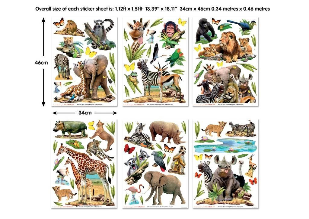 Krijg een echt safarigevoel in de kinderkamer met deze muurstickers van olifanten, zebra’s, giraffen, nijlpaarden, tijgers en meer! De set muurstickers bevat 82 hoge kwaliteit muurstickers welke eenvoudig zijn aan te brengen. Wordt geleverd op 6 afzonderlijke vellen van 46×34 cm per vel. Breng de muurstickers aan op een gladde ondergrond voor jarenlang plezier.