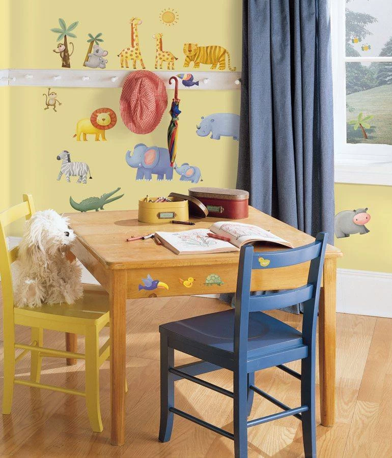 Het lijkt wel een jungle! Olifanten, een zebra, een leeuw, en nog veel meer dieren. De stickers zijn gemakkelijk aan te brengen en te verplaatsen om ze opnieuw te gebruiken. Voor een optimaal resultaat dienen de stickers op een gladde ondergrond geplakt te worden. RoomMates muurstickers worden in de VS vervaardigd van een hoogwaardig dun en flexibel vinyl. Veelgestelde vragen over de muurstickers: 1. Op welke ondergrond kunnen RoomMates muurstickers aangebracht worden? Op een vlakke niet vette en niet zuigende ondergrond die minstens 3-4 weken geleden geschilderd is. Als een muur te poreus is dan dient deze getext te worden omdat anders de sticker teveel vocht onttrekt uit de muur en snel los kan laten. 2. Hoe kan ik RoomMates muurstickers makkelijk verwijderen? Met behulp van een föhn zijn vrijwel alle stickers prima te verwijderen. Let op dat de ondergrond zoals glas niet te heet wordt! 3. Zijn de RoomMates muurstickers herbruikbaar? RoomMates Muurstickers zijn, mits volgens de gebruiksaanwijzing aangebracht, telkens weer opnieuw te verwijderen en weer te hergebruiken.