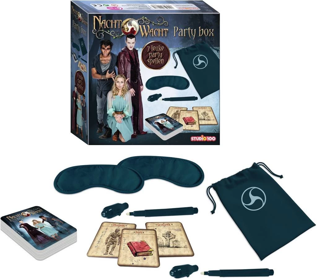 Ben je een echte Nachtwacht-fan? Dan is een Nachtwacht-feestje vast iets voor jou! In deze partybox vind je alles om 7 spannende Nachtwacht-spelletjes te spelen: een pen met onzichtbare inkt, een blinddoek, speelkaarten,… Speel de 7 griezelige Nachtwachtspelletjes en toon dat jij een echte Nachtwachter bent! Tijd voor een spannend feestje!