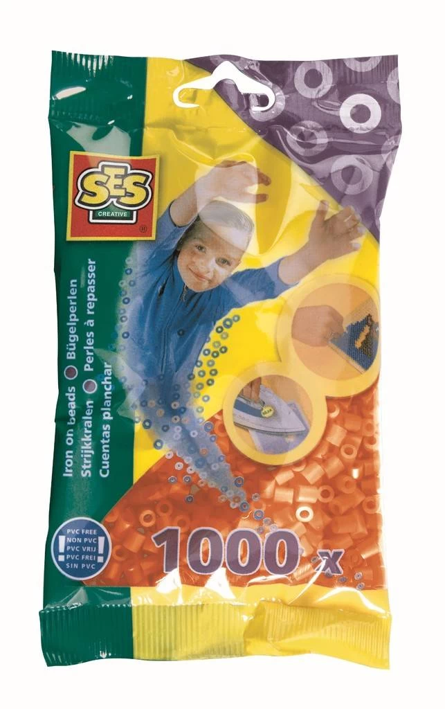 Maak de mooiste creaties met de strijkkralen van SES! In deze zak zitten duizend oranje strijkkralen.