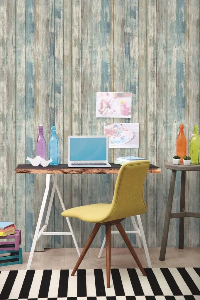 ‘Blauwe Disteressed Wood’-P&S Décor van RoomMates op je muur een frisse verandering aan te brengen