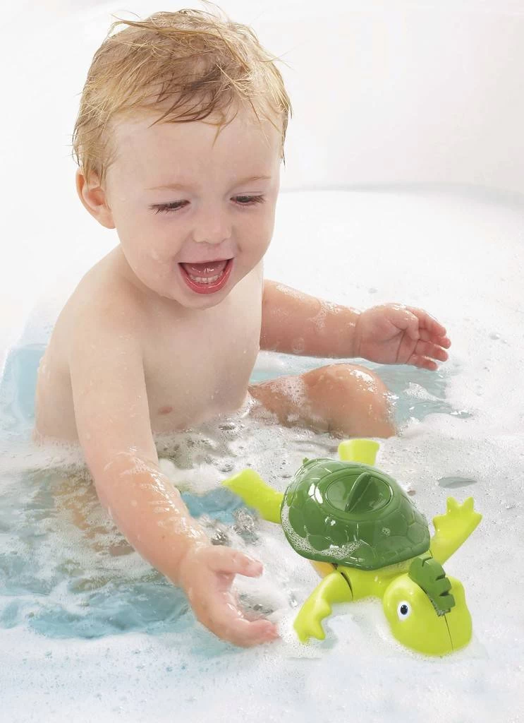 De TOMY Zwem & Zang Schildpad zal na opwinden vrolijk de borstcrawl doen. Hij begeleid zich zelf met een grappig en vrolijk deuntje. Net als een echte schildpad, voelt deze vrolijke schildpad zich niet alleen in het water thuis, maar kan er ook met hem op het droge gespeeld worden. Schaterlachen in het water, dat bieden de vrolijke en kleurrijke waterspeeltjes van TOMY. Eindeloos speelplezier tijdens het badderen, voor peuters, kleuters, kinderen en hun ouders/verzorgers. Of het nu in de badkuip, opblaasbadje of in het pierebadje is, TOMY heeft voor alle wateractiviteiten passende producten. Badderen is een fantastisch moment om al spelend een band te vormen met je kind. Daarbij is ‘het in bad gaan’ een veel gebruikte routine voor het slapen gaan. Met de badspeeltjes van TOMY wordt badtijd nog leuker!