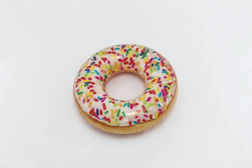 Grote Intex luchtband, voorzien van een vrolijk donut design. Vervaardigd uit stevig 0.25 mm dik vinyl. Heeft een doorsnede van 114 cm.